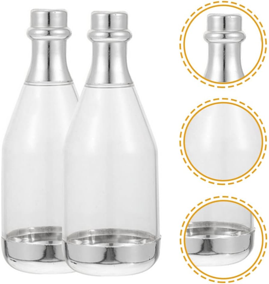 Features- Color: Golden/Sliver- Material: PP- Size: 11.5 x 4 x 4cm/4.52 x 1.57 x 1.57 inches.Package Including20 x Mini Champagne Bottles