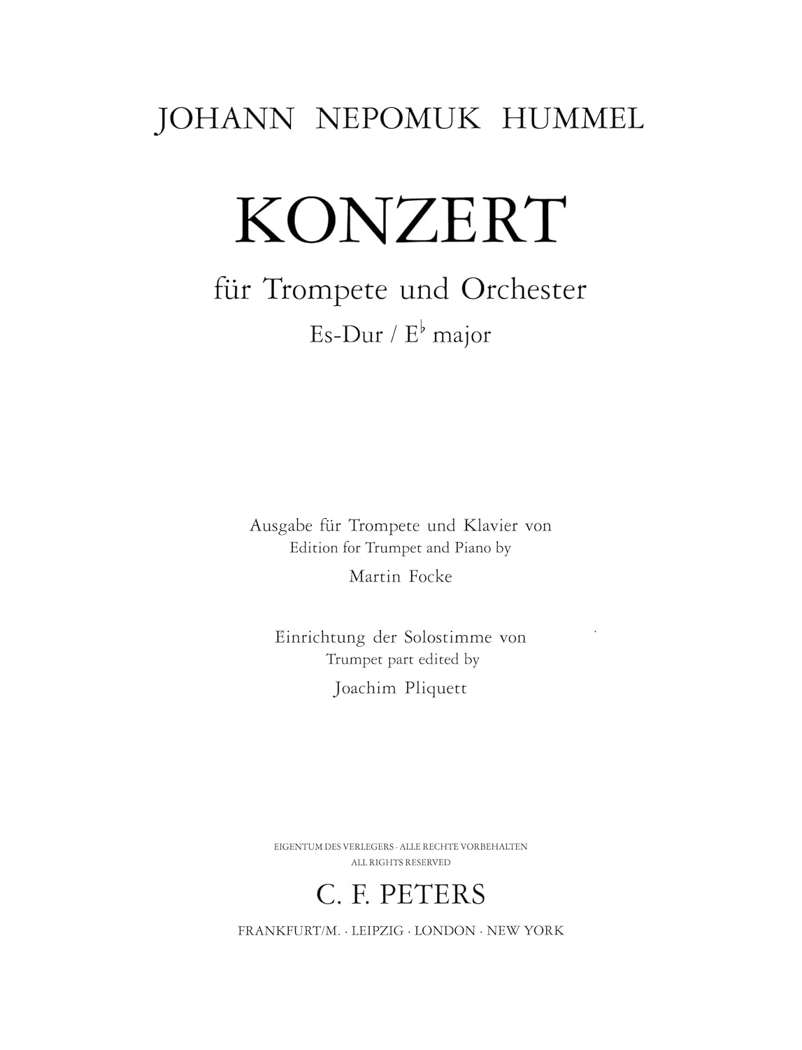 Hummel: Trumpet Concerto (Solo Part with Piano Reduction – Transposed to E-flat) Sheet music – January 1, 2000